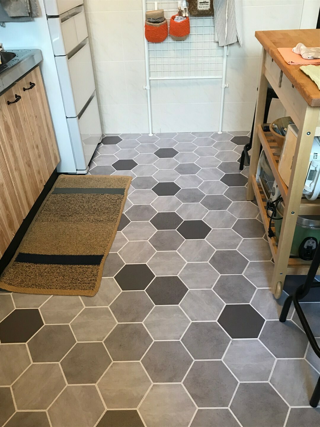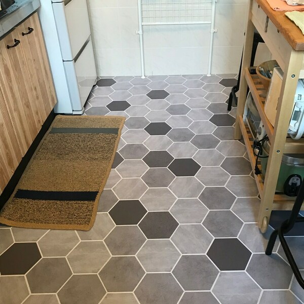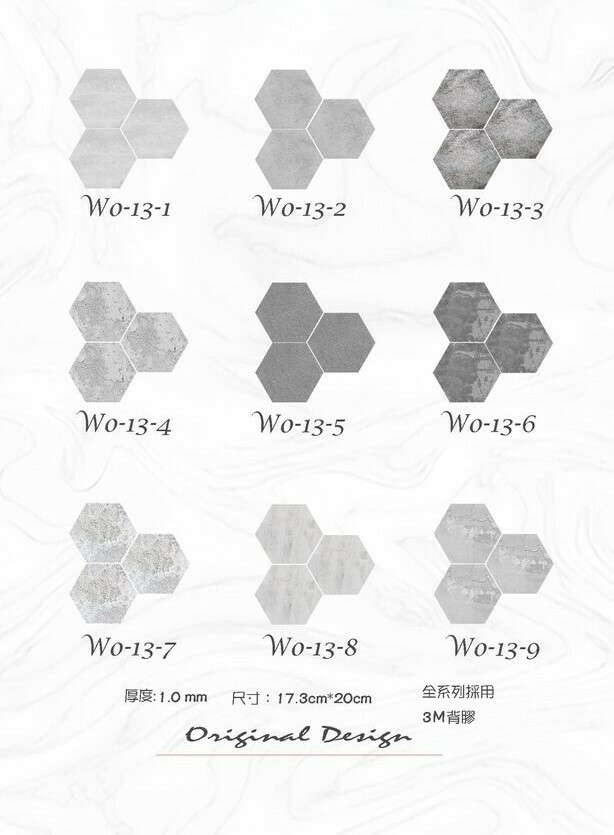 HHWO13(水泥岩系)-MIT擬瓷感六角花磚貼/廚房防油貼/地板裝飾貼/傢俱翻新貼皮(單片入)