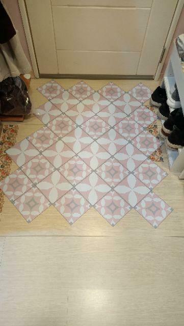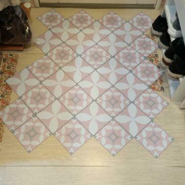 SSPK66(莫蘭迪粉系連續花磚)-MIT擬瓷感正方形花磚貼/廚房防油貼/地板裝飾貼/傢俱翻新貼皮(單片入)