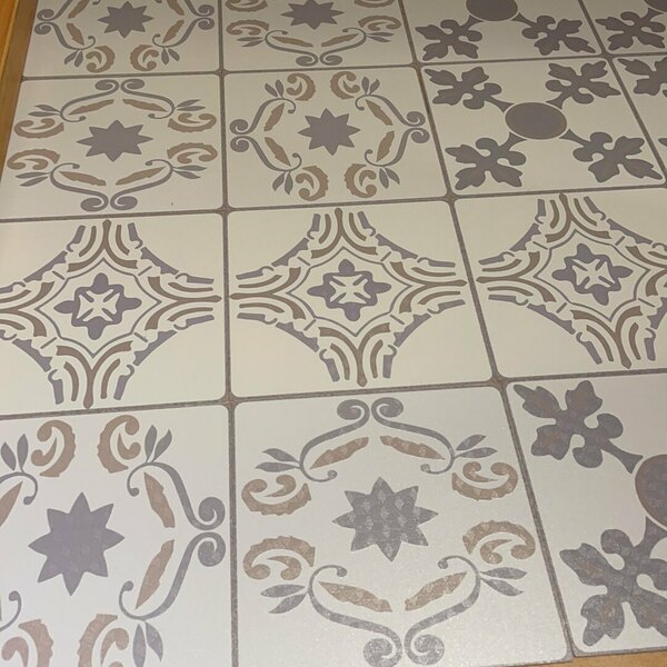 SSSH13(摩洛哥式地毯花磚)-MIT擬瓷感正方形花磚貼/廚房防油貼/地板裝飾貼/傢俱翻新貼皮(單片入)
