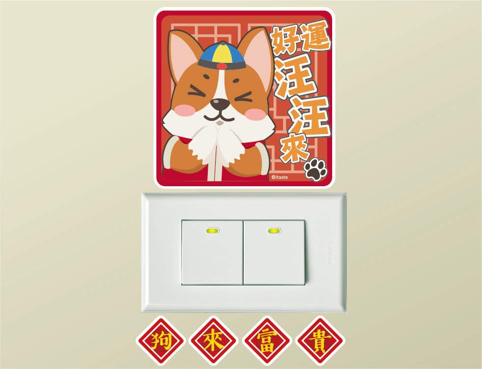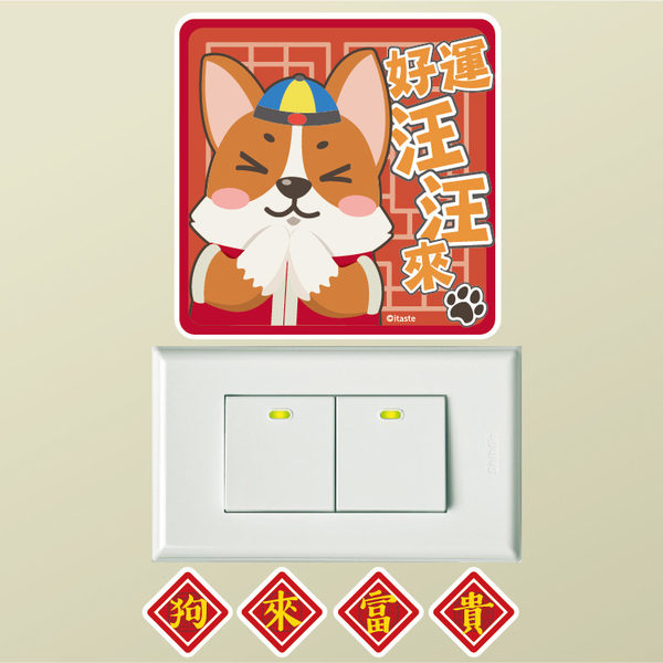 柯基犬貼系列開關壁貼-好運汪汪來