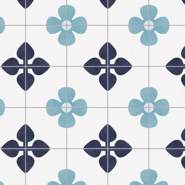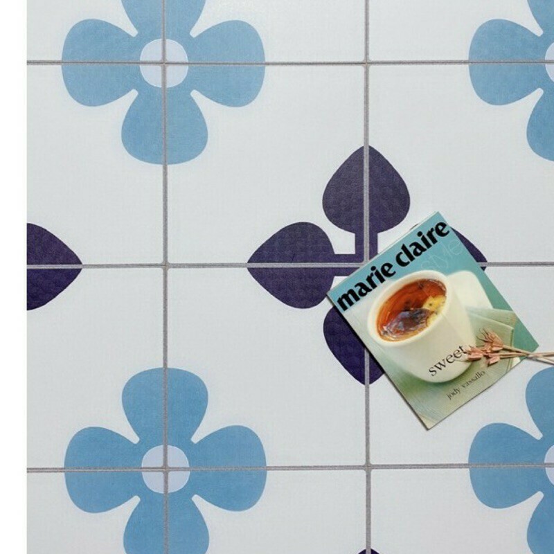 SSGH39(代爾夫特藍連續花磚)-MIT擬瓷感正方形花磚貼/廚房防油貼/地板裝飾貼/傢俱翻新貼皮(單片入)