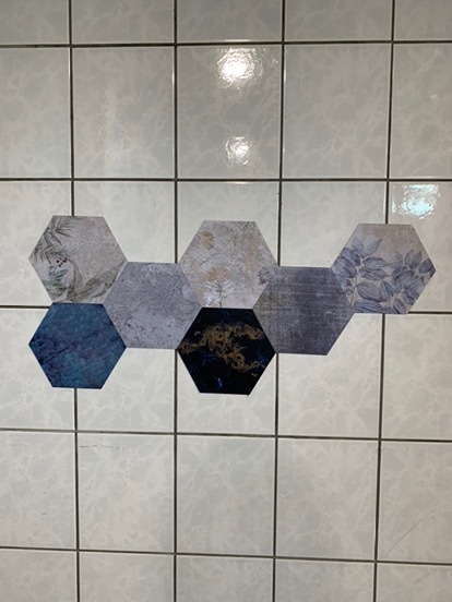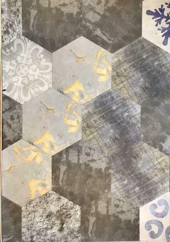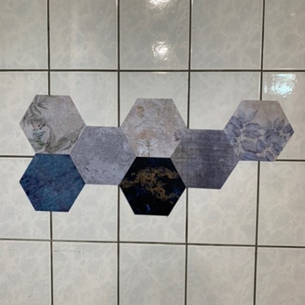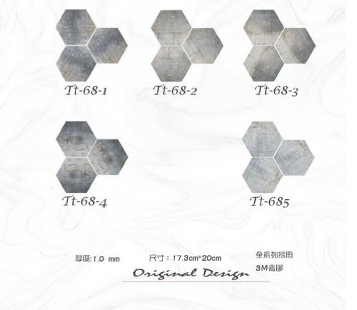 HHTT68(漸層仿舊混色石磚)-MIT擬瓷感六角花磚貼/廚房防油貼/地板裝飾貼/傢俱翻新貼皮(單片入)