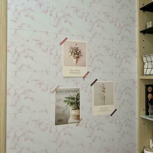 SSPM01粉色大理石-MIT擬瓷感正方形花磚貼/廚房防油貼/地板裝飾貼/傢俱翻新貼皮(單片入)