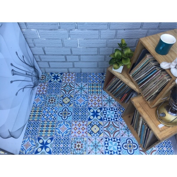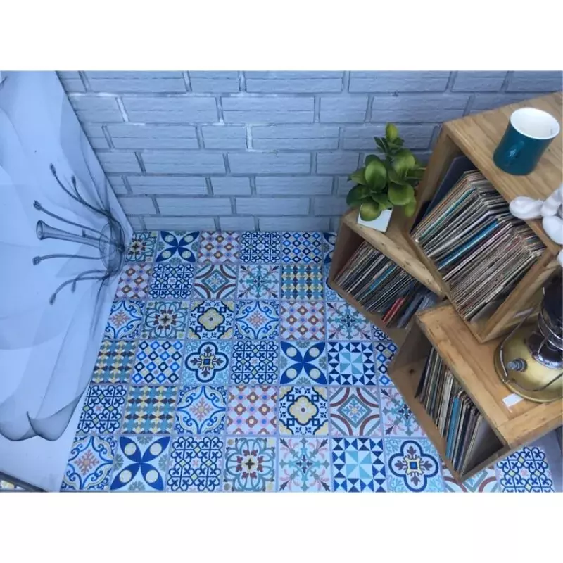 SSPG4(西班牙阿茲勒赫花磚)-MIT擬瓷感正方形花磚貼/廚房防油貼/地板裝飾貼/傢俱翻新貼皮(單片入)