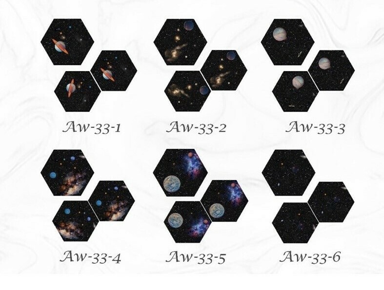 HHAW33(銀河星系)-MIT擬瓷感六角花磚貼/廚房防油貼/地板裝飾貼/傢俱翻新貼皮(單片入)