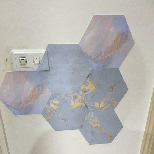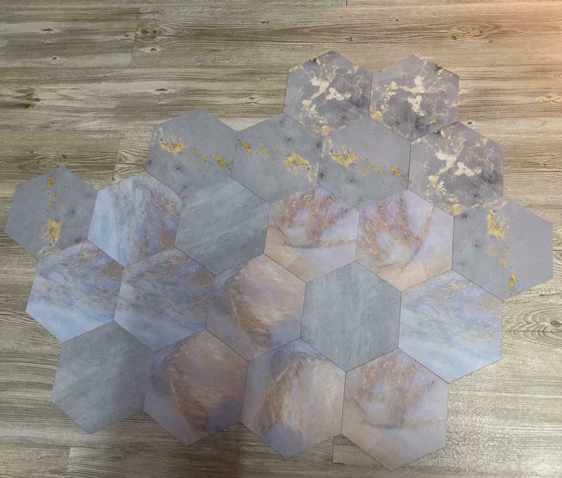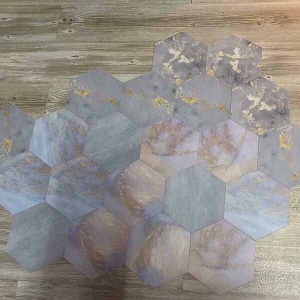 HHDF67(復古金彩大理石系)-MIT擬瓷感六角花磚貼/廚房防油貼/地板裝飾貼/傢俱翻新貼皮(單片入)