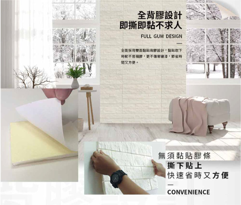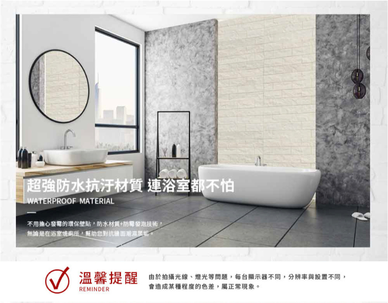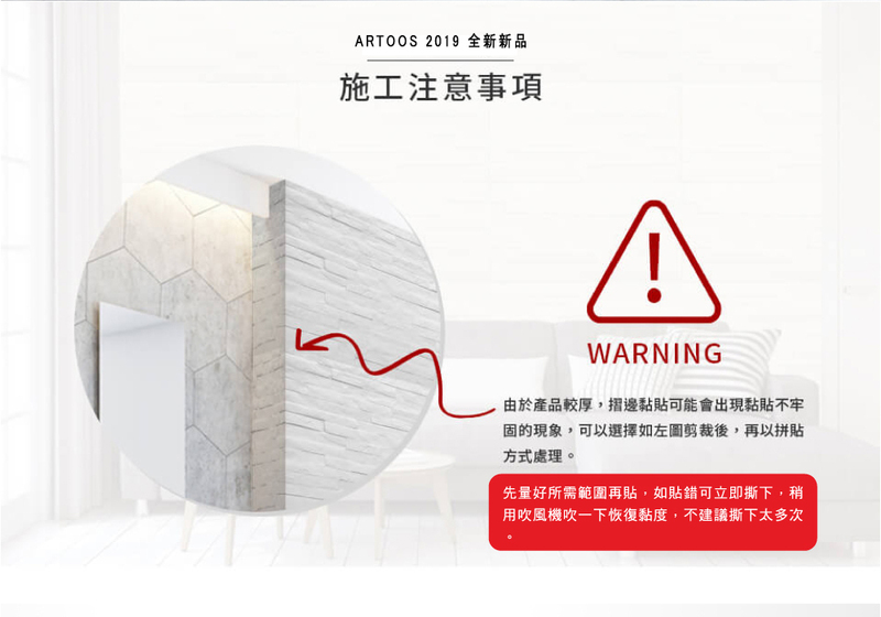 注意事項:凹凸牆面,磨砂以及牆面掉灰不平整不可貼