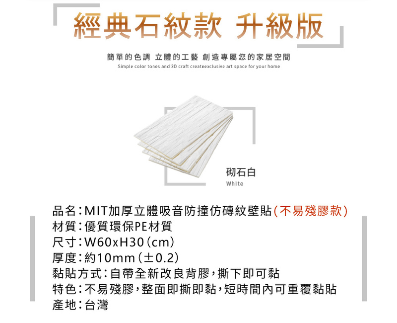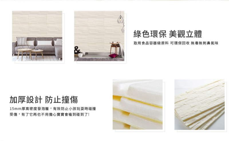 MIT重複貼不殘膠隔音防撞泡棉壁貼 - 砌石紋