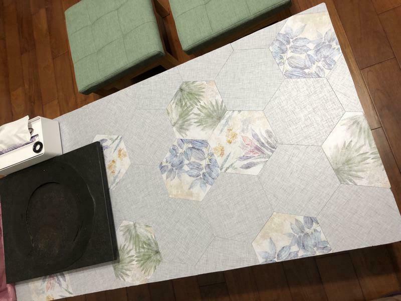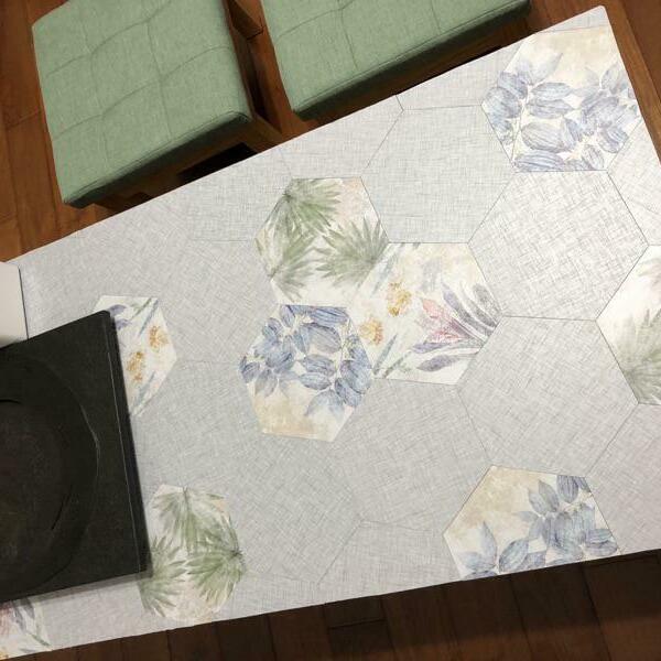 HHMK59(素雅織布紋)-MIT擬瓷感六角花磚貼/廚房防油貼/地板裝飾貼/傢俱翻新貼皮(單片入)