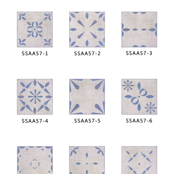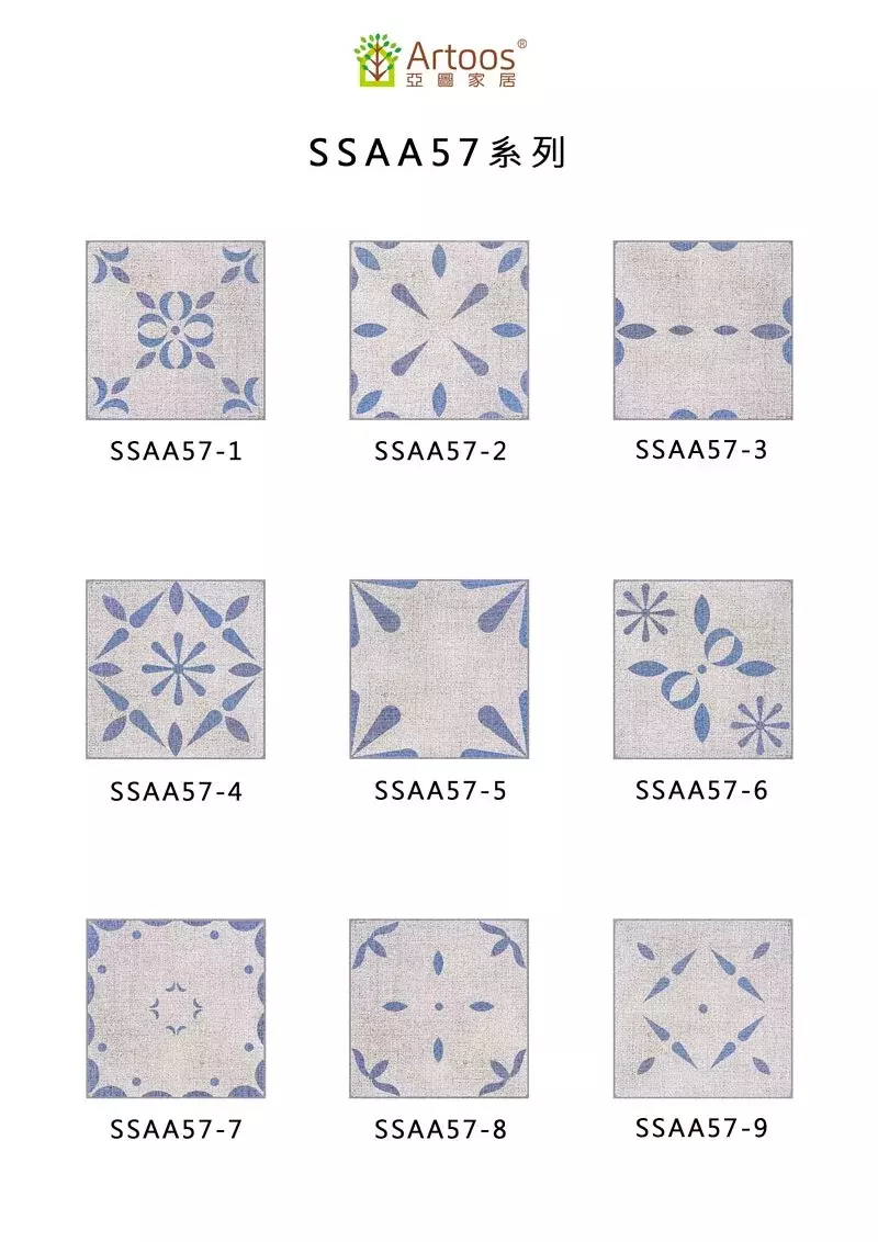 SSAA57(古典莫蘭迪色連續花磚)-MIT擬瓷感正方形花磚貼/廚房防油貼/地板裝飾貼/傢俱翻新貼皮(單片入)