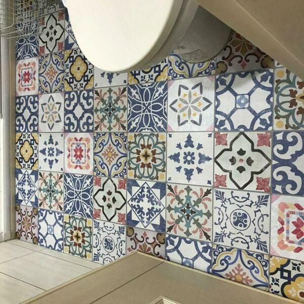 SSRQ60(波希米亞風)-MIT擬瓷感正方形花磚貼/廚房防油貼/地板裝飾貼/傢俱翻新貼皮(單片入)