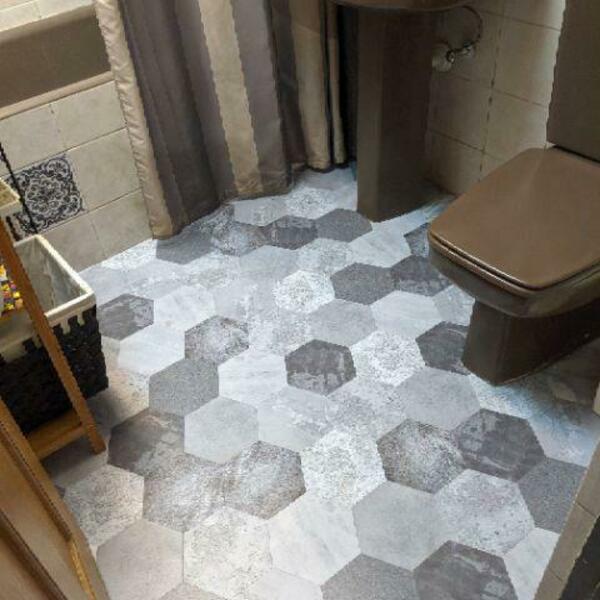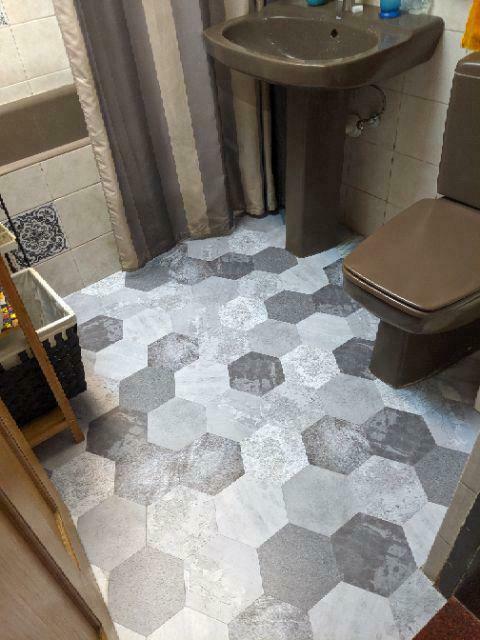 HHWS37(復古石磚風)-MIT擬瓷感六角花磚貼/廚房防油貼/地板裝飾貼/傢俱翻新貼皮(單片入)