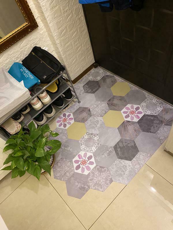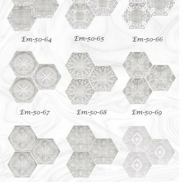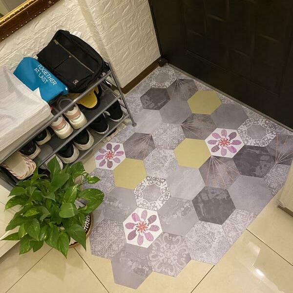 HHEM50(清新水泥花磚)-MIT擬瓷感六角花磚貼/廚房防油貼/地板裝飾貼/傢俱翻新貼皮(單片入)