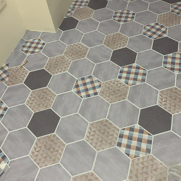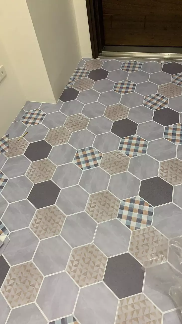HHZZ19(編織格紋系)-MIT擬瓷感六角花磚貼/廚房防油貼/地板裝飾貼/傢俱翻新貼皮(單片入)